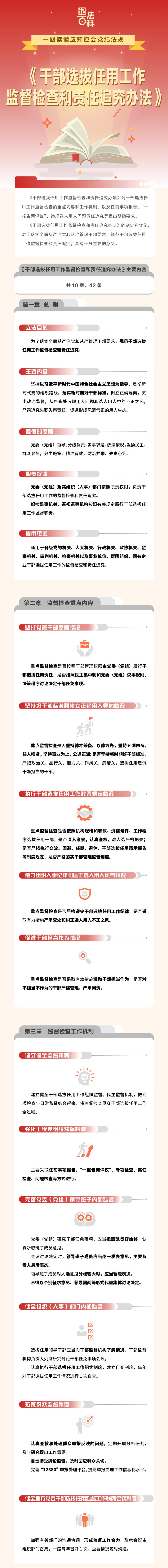 纪法百科·一图读懂应知应会党纪法规 丨干部选拔任用工作监督检查和责任追究办法