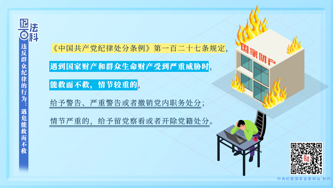 《中国共产党纪律处分条例》第一百二十七条规定,遇到国家财产和群众生命财产受到严重威胁时,能救而不救,情节较重的,给予警告、严重警告或者撤销党内职务处分;情节严重的,给予留党察看或者开除党籍处分。